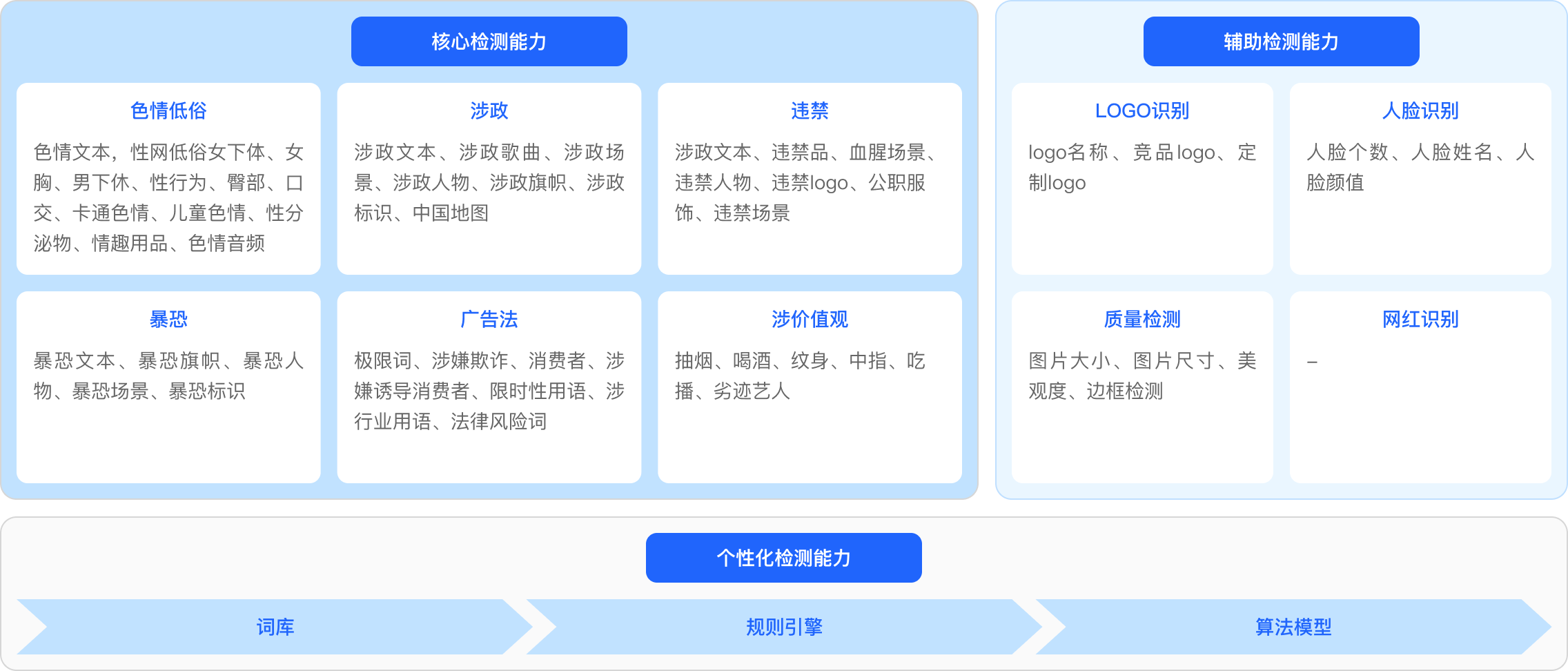 AI审核+人工审核的协同模式,通过智能审核平台实现审核工作的高效化和精准化,支持500+分类标签返回,覆盖全业务类型